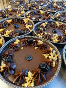 | Smak | z musem z czarnej porzeczki , z musem malinowym |