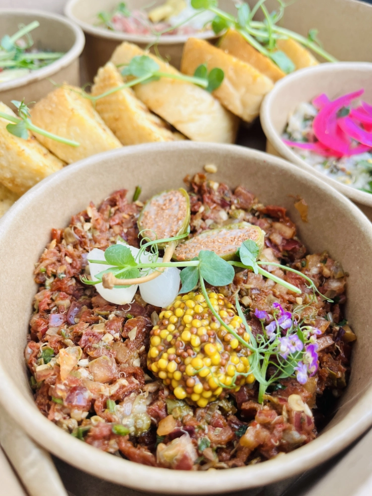 • Tatar z suszonych pomidorów/kapary/cebula czerwona/pestki słonecznika/natka pietruszki 200g