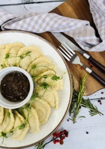 Ręcznie lepione wigilijne pierogi z kapustą, grzybami leśnymi i olejem lnianym (porcja 0,5kg)