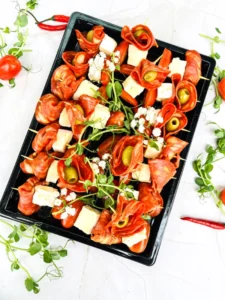 Koreczki z chorizo, oliwką, pomidorkami cherry i serem camembert 20 szt.